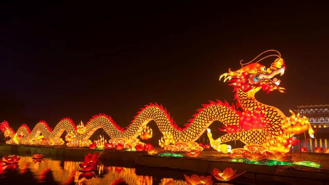 庆祝春节的龙形灯笼,中国西安 (© Pan Hong/Getty Images)