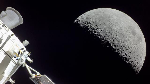 从美国宇航局猎户座飞船上看到的月球 (© NASA)