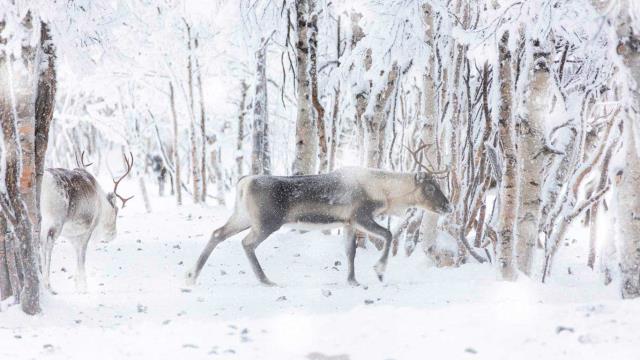 冬雪中的驯鹿,拉普兰德,芬兰 (© Roberto Moiola/Getty Images)